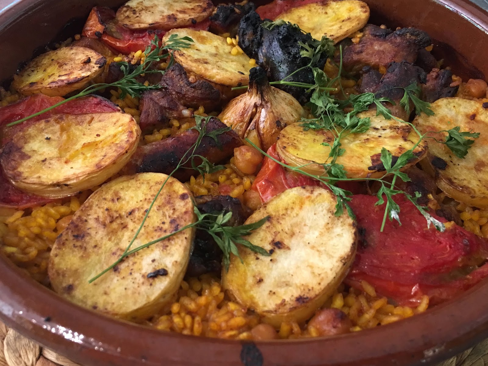 La gastronomía valenciana tiene arroces maravillosos más allá de la paella. El arroz al horno (Arròs al Forn) es uno de ellos. Un platazo que sorprende tanto por su sabor como por la peculiaridad de hacerse en el horno. Era costumbre preparar este plato con las sobras del cocido, pero como yo cocino más arroces que cocidos, compro los ingredientes en lugar de hacerlo con restos.